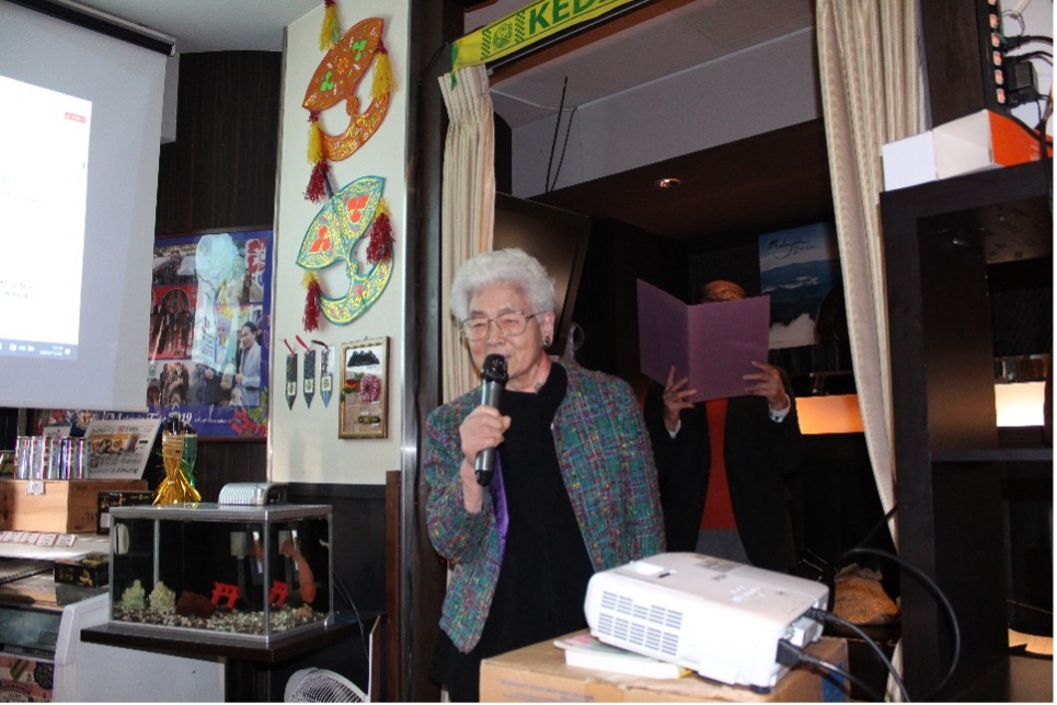 続いて当倶楽部が支援・協賛する日本マレーシア両国の子供たちの絵画交換を通じた交流事業を推進する 認定・埼玉県指定NPO法人「メイあさかセンター」の尾池富美子代表理事からその活動内容についてスライドを使って紹介をしていただきました。