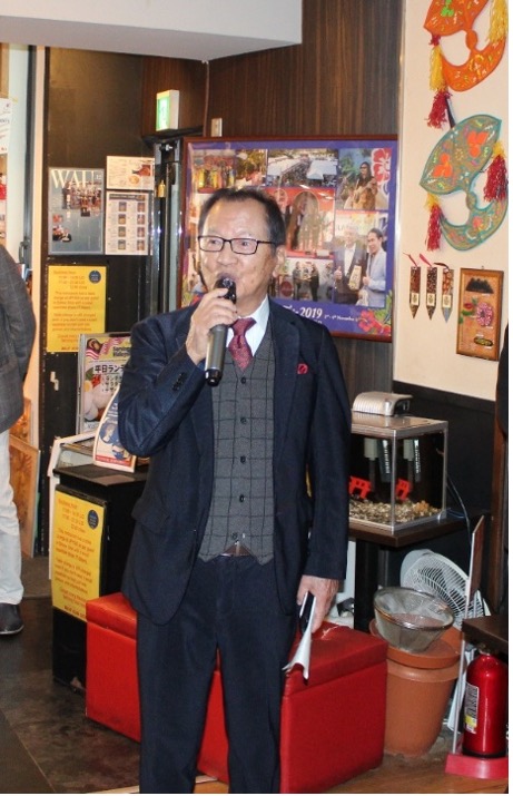 時間が経つのを忘れるほど、笑顔と活気に満ちた和気あいあいの打ち解けた雰囲気につつまれた懇親会は、島野徳太郎氏のマレーシアは五つ星ホテルの宿泊代が世界一安い、マレーシアの人々はお年寄りを大切にするような国民性がある魅力的な国。是非行って欲しいなどユーモラスなトピックを交えながらの軽妙洒脱なスピーチに参加者は、次回の再会を約しつつ「関東の一丁締め」で午後2時過ぎに中締め、お開きとなりました。