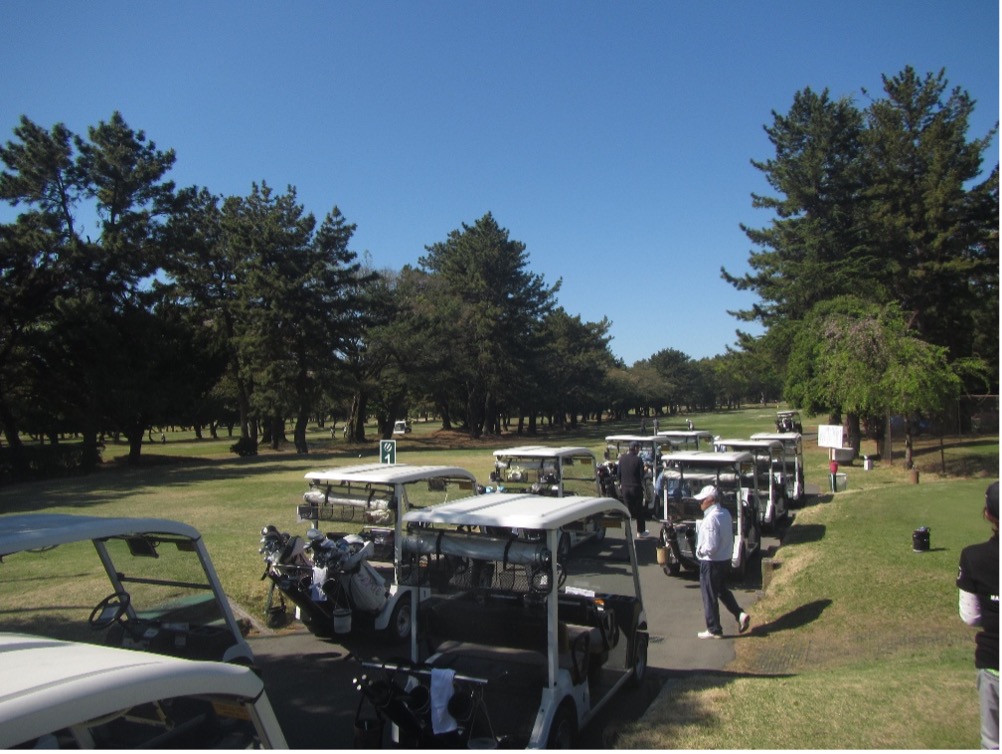 当日は、青空と薫風が吹く正にゴルフ日和の天候のもと、総勢15名の参加者中、初参加の3名の女性と3名の男性の方々をお迎えしたゴルフ会となりました。