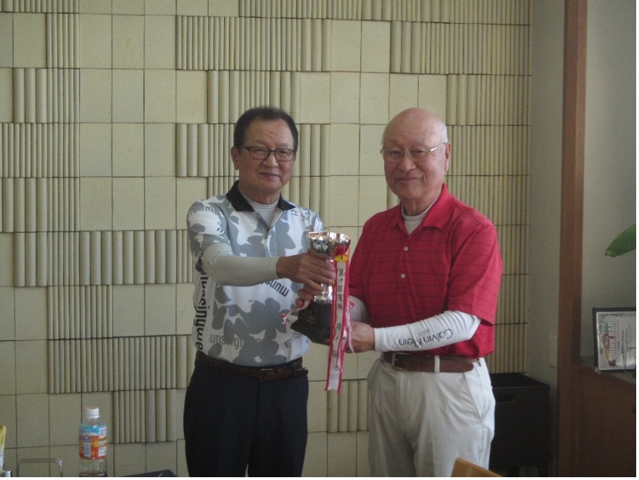 熱い戦いは、OUTホール9:06スタートによって幕が降ろされましたが、競技が終了したのは、午後3時過ぎでした。プレー終了後、成績発表と表彰式が世話役の大川善輝さんによって行われました。見事優勝カップを手にしたのは、今回もはるばる松山市から参加してくださった加藤昌次さんでした。